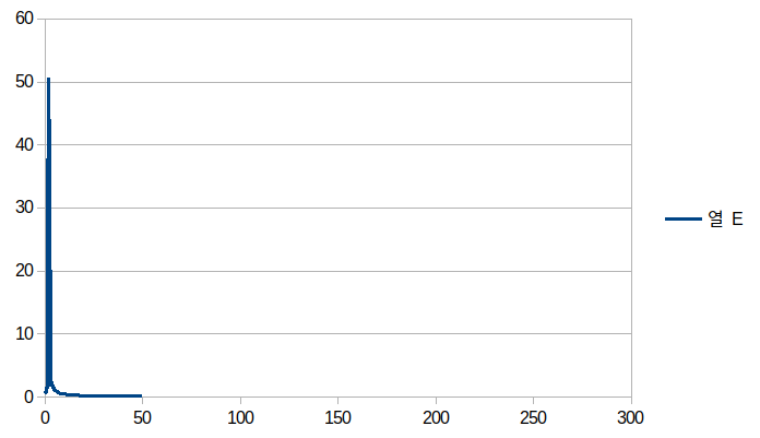 같은 애를 x축 크기만 조정해서 출력하면 아래처럼 보인다. (왼쪽은 오른쪽의 그래프를 X축에 대해서 1/5배로 축소한 것)