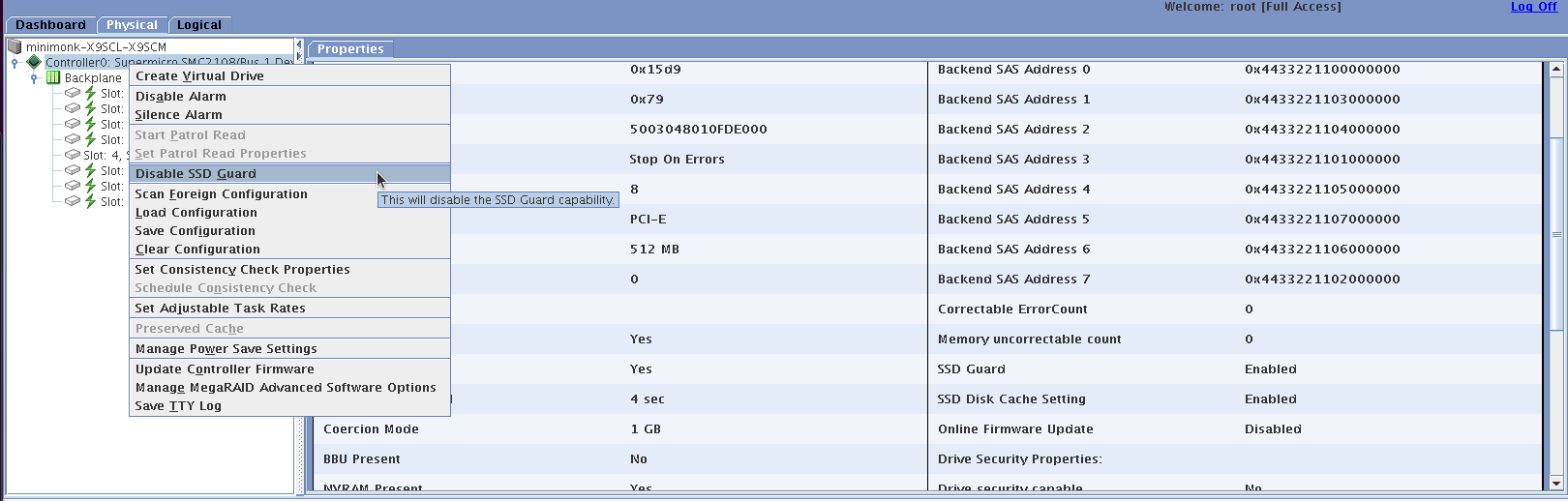Question I have bought CacheCade Pro 2.0 license (AOC-CHCD-PRO2-ESW) and optain the activation key from LSI Advanced Software License Management Portal. When I install the activation key to AOC-SA2LP-H8iR card with 2.130.363-1846 firmware, I can successfully make CacheCade Volume of SSD and assign it to some RAID Volume of HDDs. But the cache policy is locked to Write Through. By document, CacheCade Pro 2.0 support Write Back cache policy as it enhancement from prior version. What can I do to solve this problem?