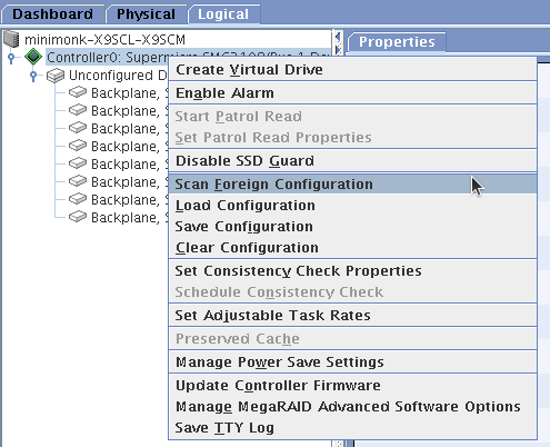 1.6.7 Drive Roaming Drive roaming occurs when the drives are changed to different ports on the same controller. When the drives are placed on different channels, the controller detects the RAID configuration from the configuration data on the drives. Configuration data is saved in both the NVRAM on the RAID controller and on the drives attached to the controller. This action maintains the integrity of the data on each drive, even if the drives have changed their physical device ID. NOTE If you move a drive that is being rebuilt, the rebuild operation restarts; it does not resume from the stopping point. Follow these steps to use the drive roaming feature: 1. Turn off the power to the server and all drives, enclosures, and system components. Disconnect the power cords from the system. 2. Open the host system by following the instructions in the host system technical documentation. 3. Move the drives to different positions on the backplane to change the targets. 4. Determine the SAS target requirements. 5. Perform a safety check. a. Make sure that the drives are inserted correctly. b. Close the cabinet of the host system. 6. Reconnect the power cords to the system. 7. Turn on the power to the system. The controller then detects the RAID configuration from the configuration data on the drives
