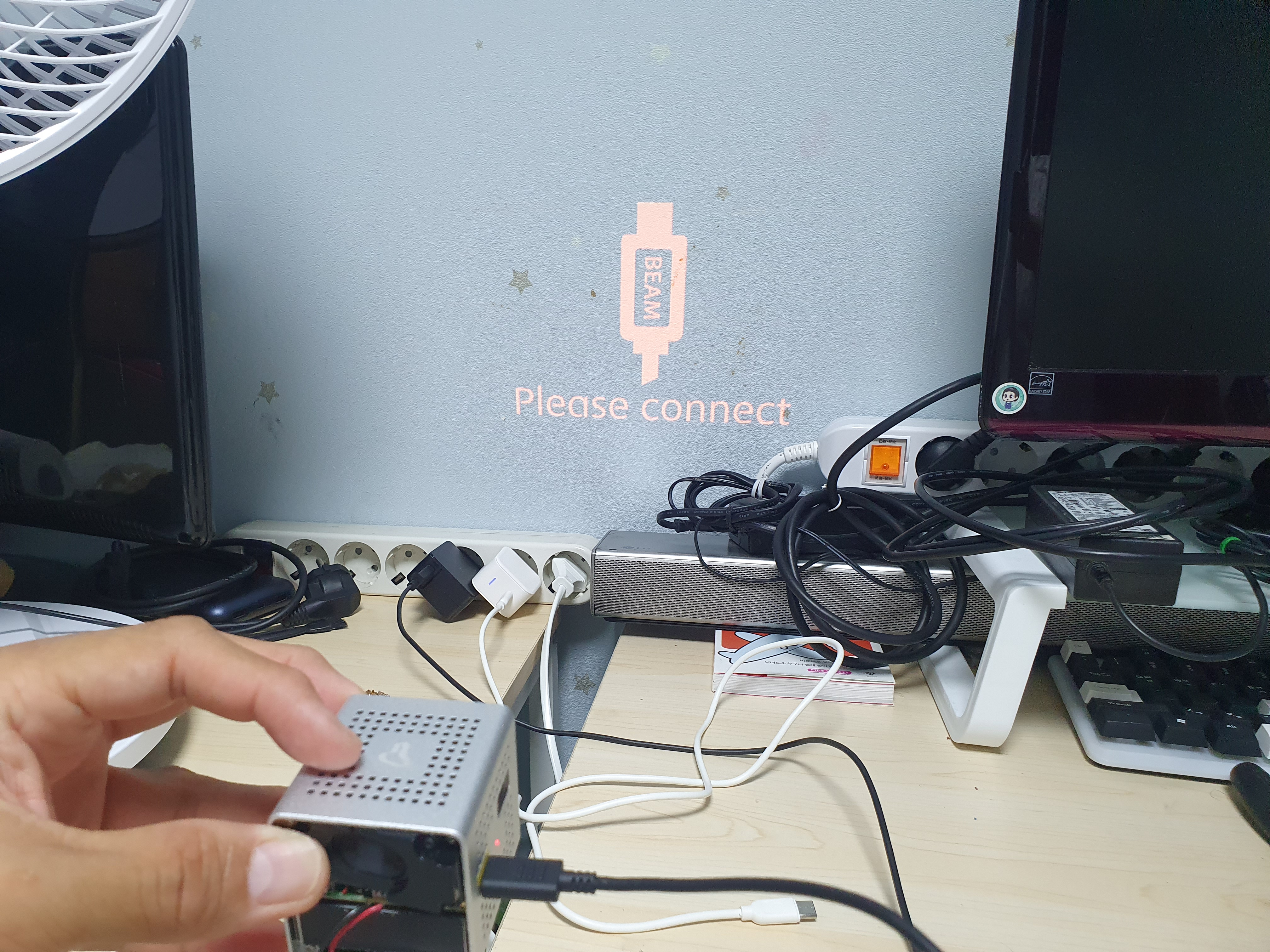 켜면 로고 이후에 깔끔한 디자인의 연결 아이콘이 뜬다.