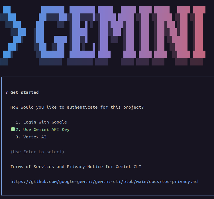 gemini 실행, api 키로 로그인