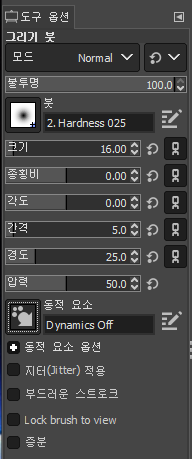 기본값이 dynamics off 이고, 마우스 대신 펜으로 반드시 동적요소를 바꾸어 주어야 펜에 적용된다.