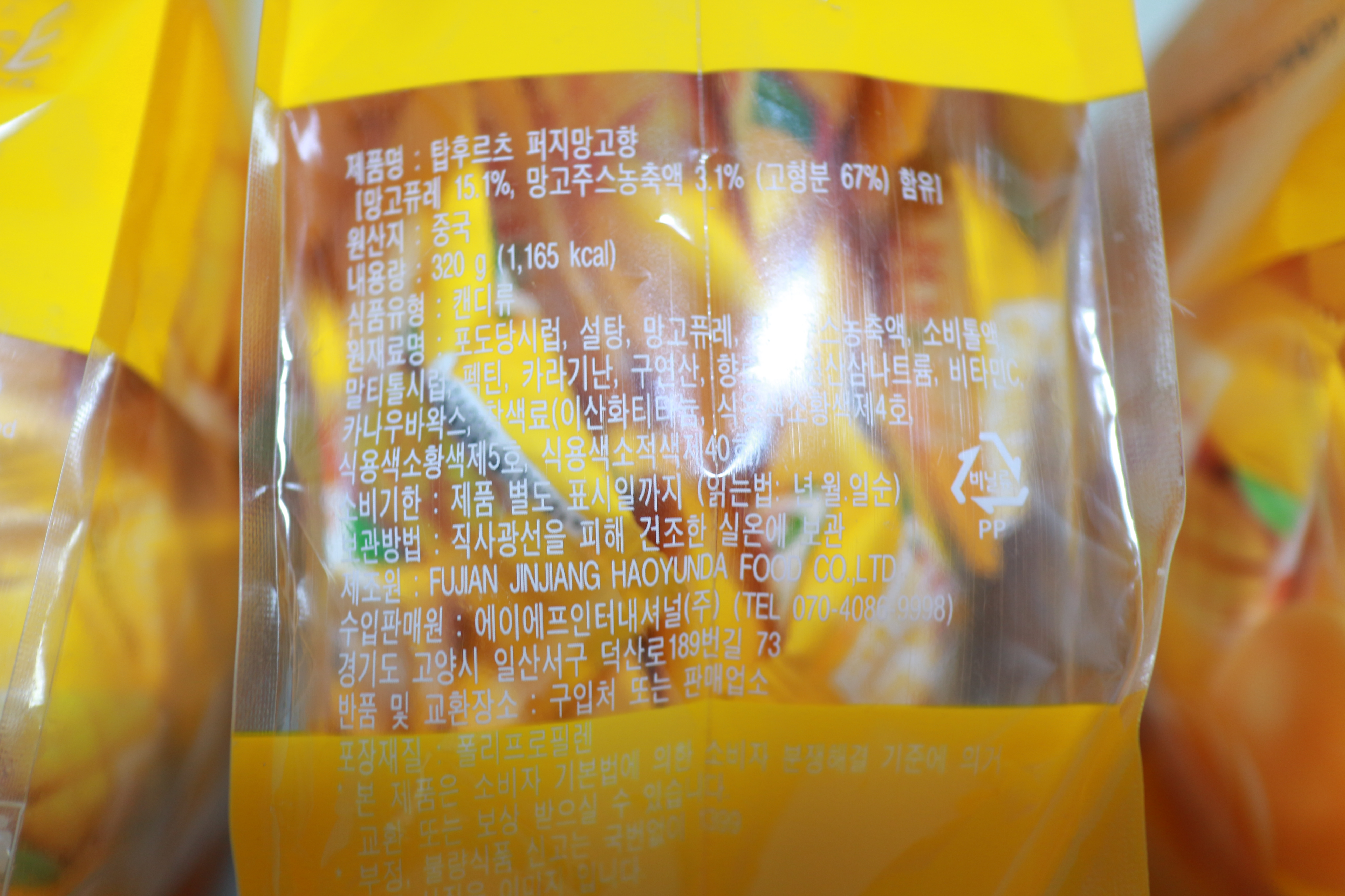 | 직구 | 제조원 : FUJIAN JINJIANG HAOYUNDA FOOD CO.,LTD 원산지 중국 |