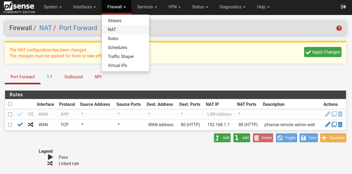 (System- advanced - Firewall & NAT - Network Address Translation)