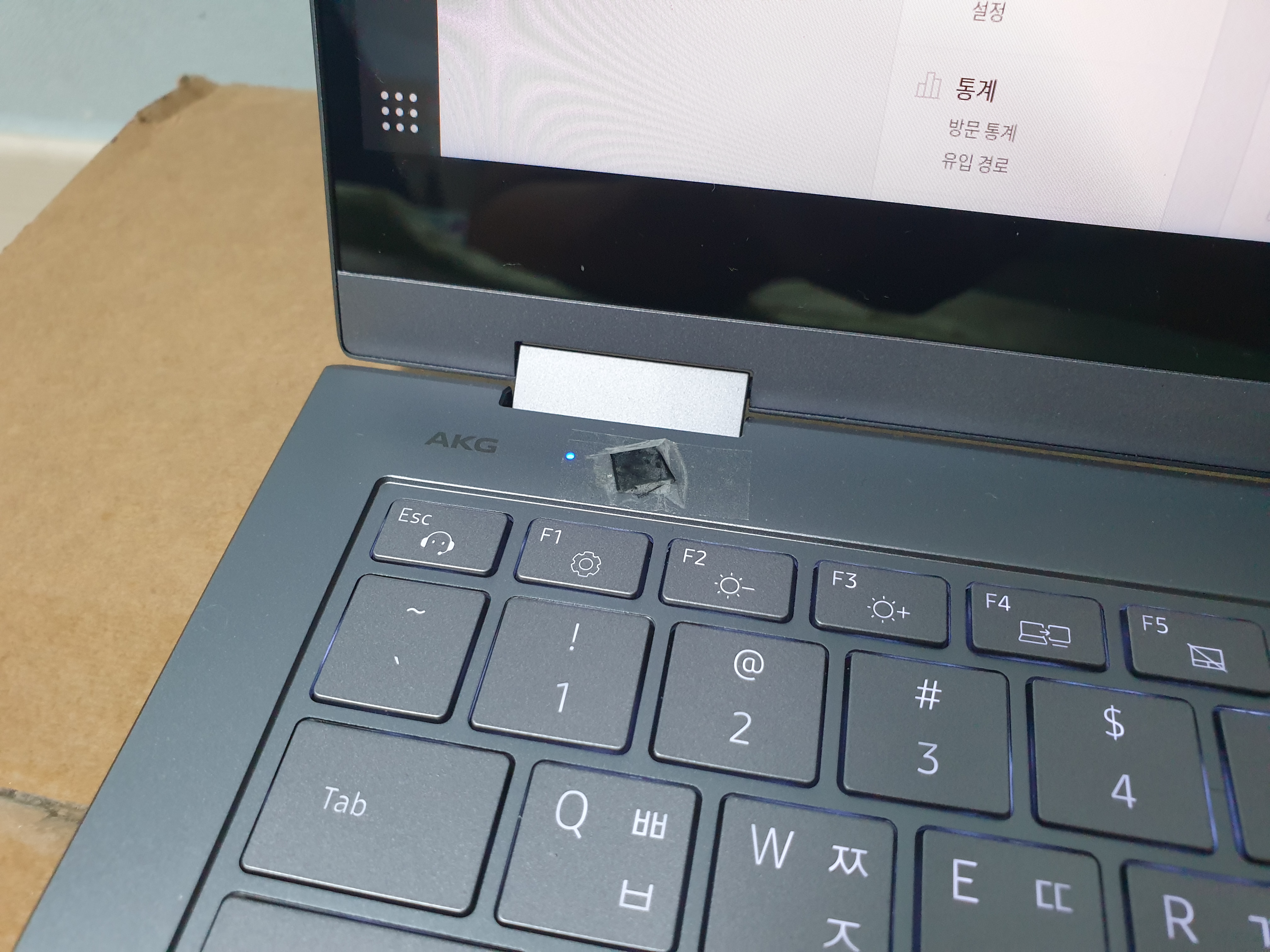 그래서! 본체 좌측 상단의 파란색 전원 LED 옆의 조도 센서를 가려주면 백라이트가 켜진다.
