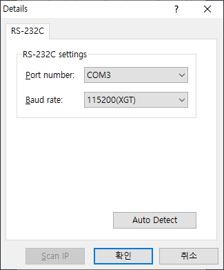 아래와 같이 PLC 장비에서 설정했던 대로 115200-N-8-1/ASCII로 설정하고 고고!
