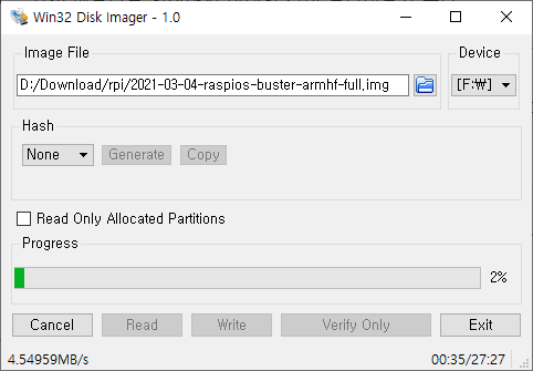 $ lsblk NAME MAJ:MIN RM SIZE RO TYPE MOUNTPOINT mmcblk0 179:0 0 29.1G 0 disk ├─mmcblk0p1 179:1 0 256M 0 part /boot └─mmcblk0p2 179:2 0 28.9G 0 part / mmcblk0boot0 179:32 0 4M 1 disk mmcblk0boot1 179:64 0 4M 1 disk