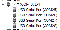 헐.. 무슨 디버그 포트가 이렇게 많이 인식 돼? 일단 나의 경우에는 리눅스가 COM27로 연결되었다.