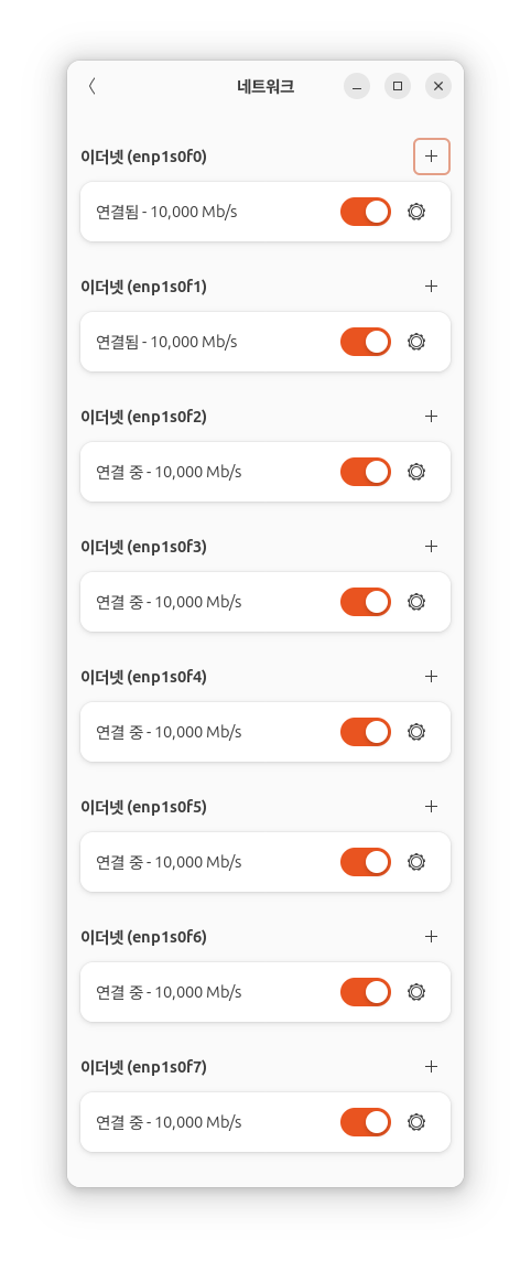 우분투에서 SF(single Function)으로는 enp1s0f0 / enp1s0f1 라고 떴는데