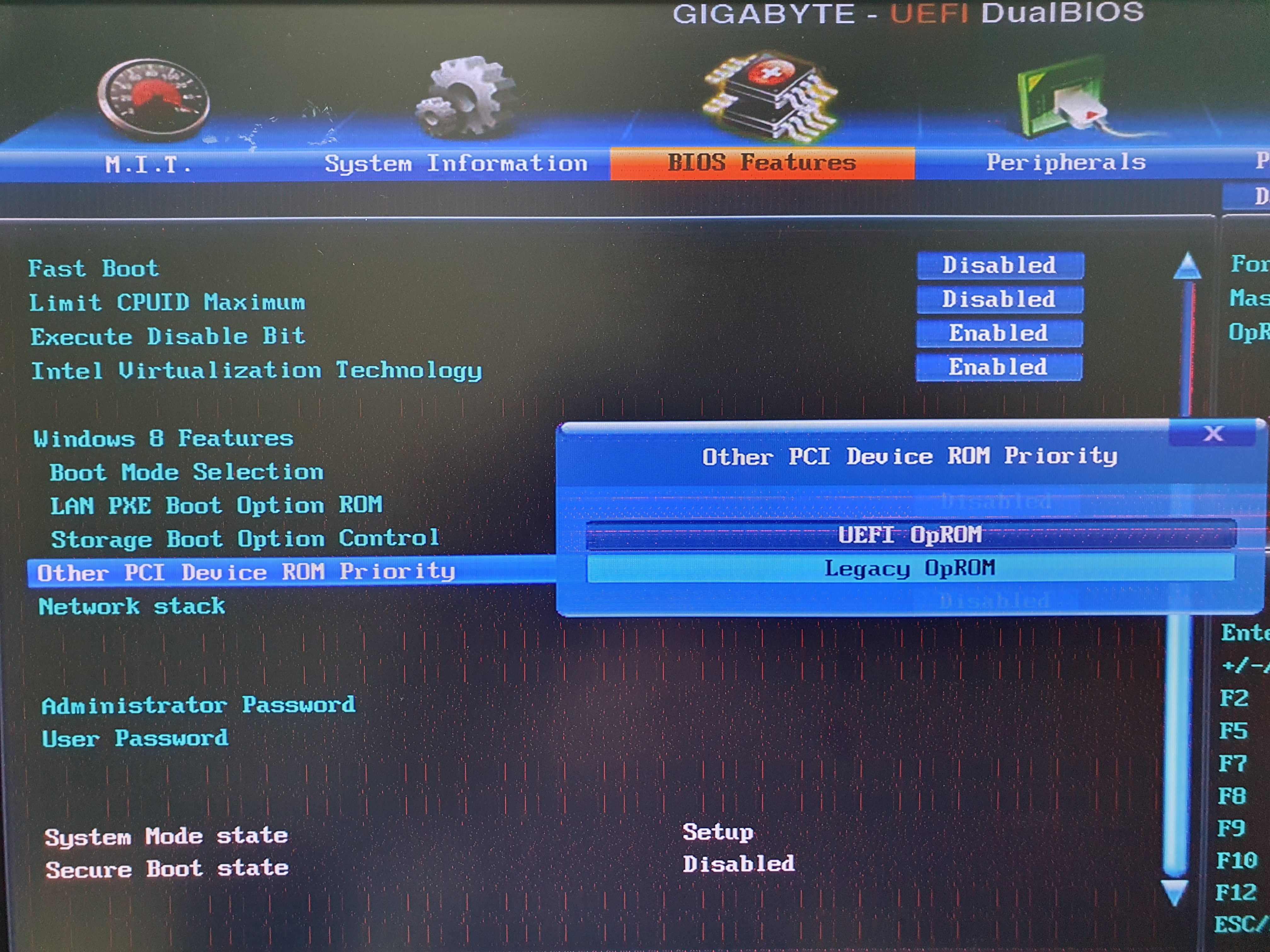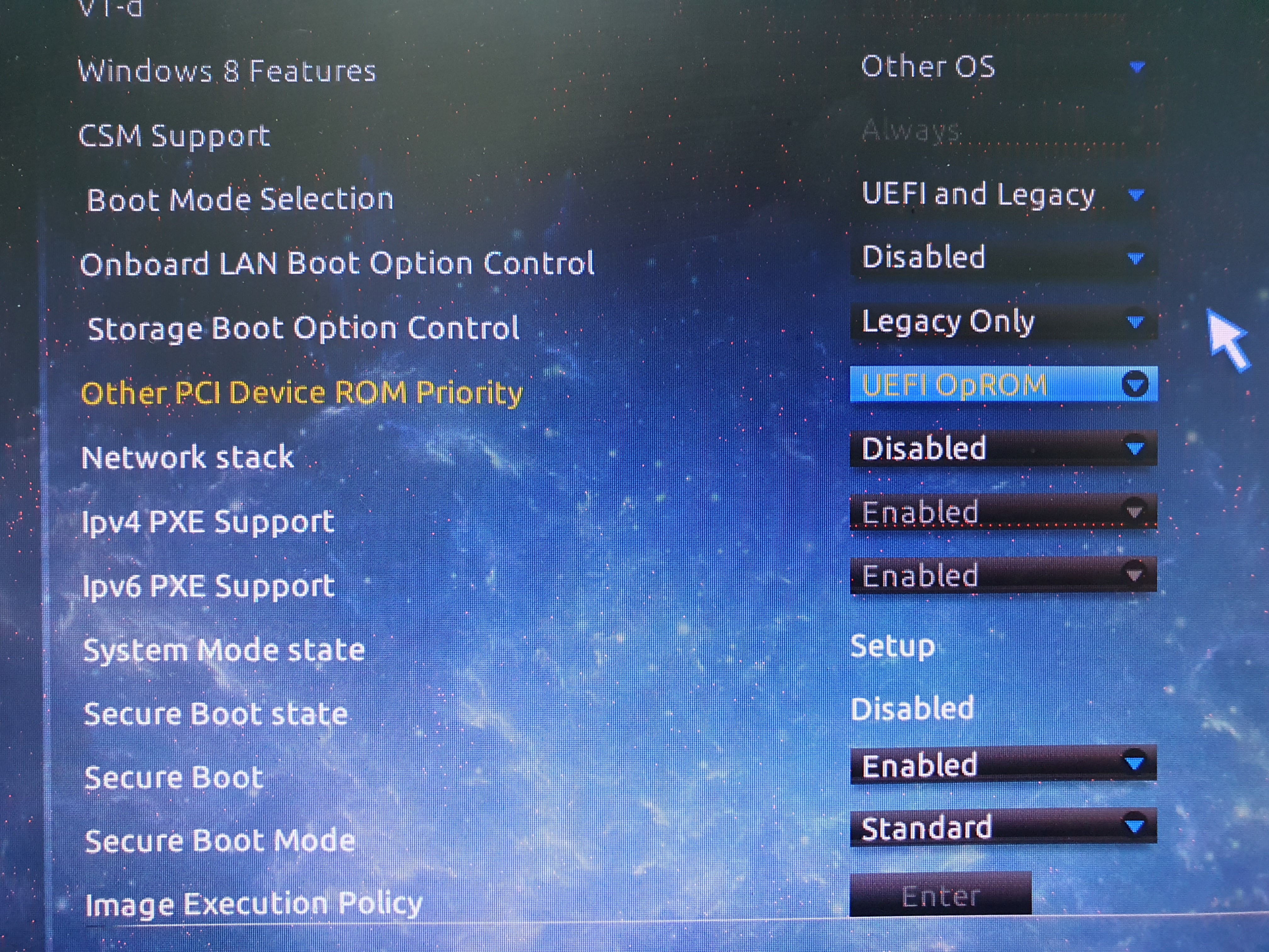 아무튼 업데이트 하고 나서 Legacy / UEFI OpROM 바꾸어 봤지만 둘다 된다. 우선순위일뿐, 둘 다 시도하는건가?