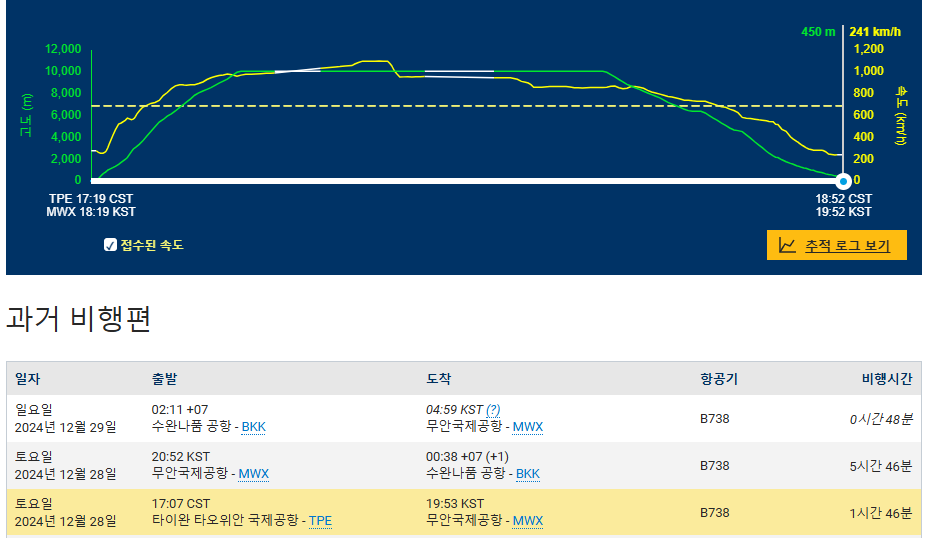 [링크 : https://ko.flightaware.com/live/flight/HL8088/history/20241228/0855Z/RCTP/RKJB]