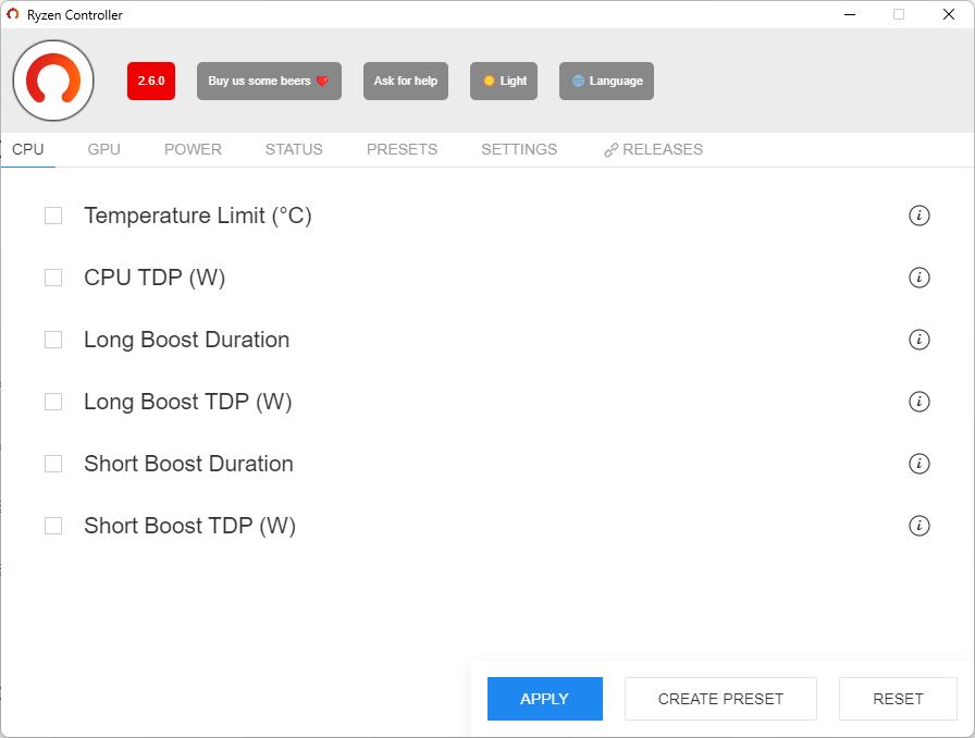 [링크 : https://github.com/JamesCJ60/AMD-APU-Tuning-Utility]