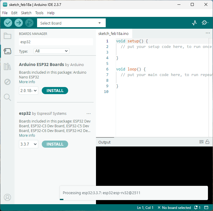 경고: 라이브러리 ESP_SR에서 카테고리 'Sound'가 유효하지 않습니다. 'Uncategorized'로 설정 경고: 라이브러리 Hash에서 카테고리 'Security'가 유효하지 않습니다. 'Uncategorized'로 설정 경고: 라이브러리 ESP Insights에서 카테고리 ''가 유효하지 않습니다. 'Uncategorized'로 설정 경고: 라이브러리 ESP RainMaker에서 카테고리 ''가 유효하지 않습니다. 'Uncategorized'로 설정 경고: 라이브러리 TFLite Micro에서 카테고리 ''가 유효하지 않습니다. 'Uncategorized'로 설정 경고: 라이브러리 WiFiProv에서 카테고리 ''가 유효하지 않습니다. 'Uncategorized'로 설정 Archiving built core (caching) in: /tmp/arduino_cache_547584/core/core_esp32_esp32_esp32_JTAGAdapter_default,PSRAM_disabled,PartitionScheme_default,CPUFreq_240,FlashMode_dio,FlashFreq_80,FlashSize_4M,UploadSpeed_921600,LoopCore_1,EventsCore_1,DebugLevel_none,EraseFlash_none,ZigbeeMode_default_302ebf432393f02a3a54f86a94370d90.a >: -c: 줄 1: `''을(를) 찾는 도중 예상치 못한 파일의 끝 >: -c: 줄 2: 문법 오류: 예기치 않은 파일의 끝 exit status 2 보드 ESP32 Dev Module 컴파일 에러.