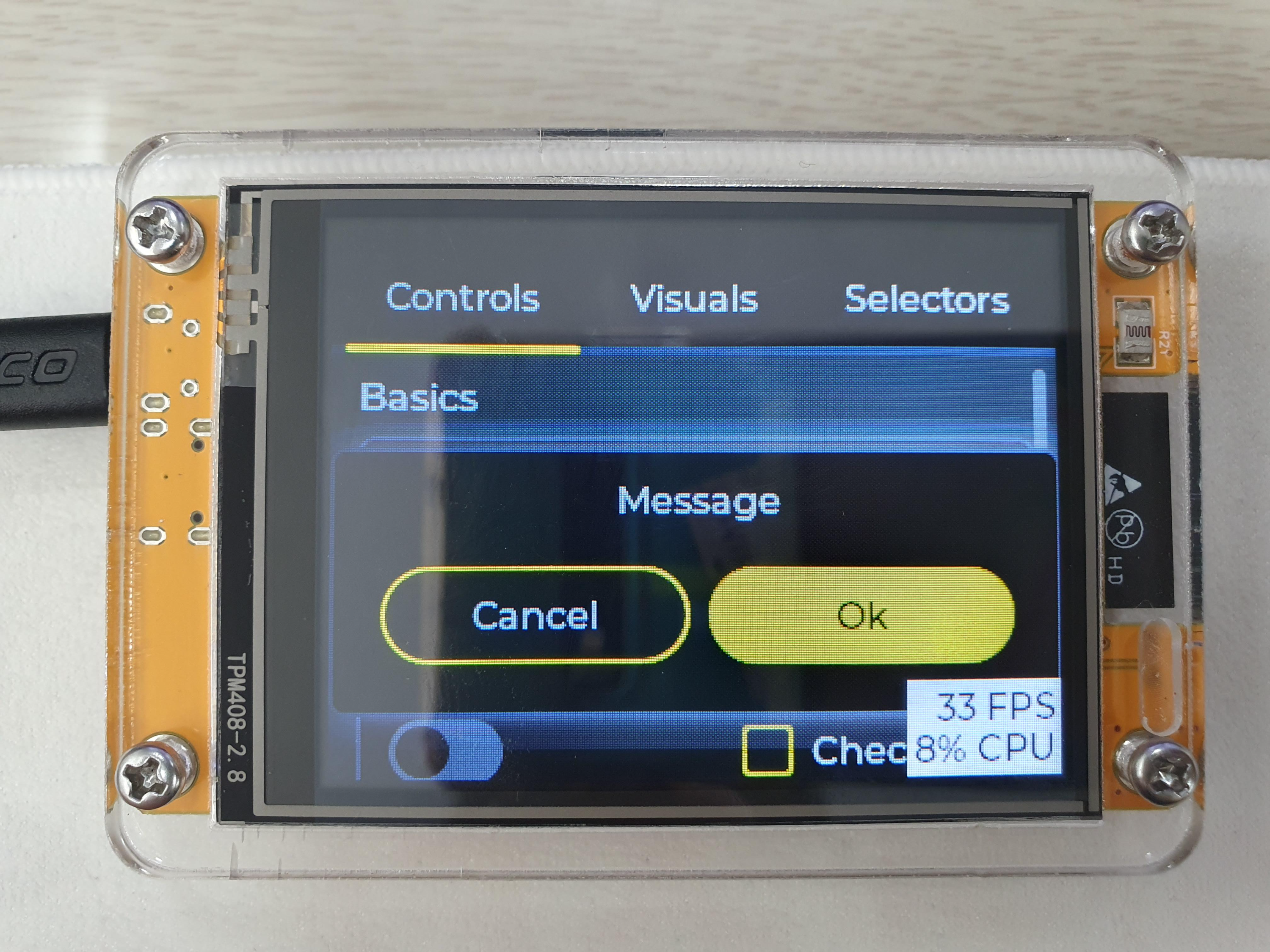 # # LVGL TFT Display controller # CONFIG_LVGL_PREDEFINED_DISPLAY_NONE=y # CONFIG_LVGL_PREDEFINED_DISPLAY_WROVER4 is not set # CONFIG_LVGL_PREDEFINED_DISPLAY_M5STACK is not set # CONFIG_LVGL_PREDEFINED_DISPLAY_M5STICK is not set # CONFIG_LVGL_PREDEFINED_DISPLAY_M5STICKC is not set # CONFIG_LVGL_PREDEFINED_DISPLAY_ERTFT0356 is not set # CONFIG_LVGL_PREDEFINED_DISPLAY_ADA_FEATHERWING is not set # CONFIG_LVGL_PREDEFINED_DISPLAY_RPI_MPI3501 is not set # CONFIG_LVGL_PREDEFINED_DISPLAY_WEMOS_LOLIN is not set # CONFIG_LVGL_PREDEFINED_DISPLAY_ATAG is not set # CONFIG_LVGL_PREDEFINED_DISPLAY_RPI_RA8875 is not set # CONFIG_LVGL_PREDEFINED_DISPLAY_TTGO is not set CONFIG_LVGL_TFT_DISPLAY_CONTROLLER_ILI9341=y CONFIG_LVGL_TFT_DISPLAY_PROTOCOL_SPI=y CONFIG_LVGL_PREDEFINED_PINS_NONE=y # CONFIG_LVGL_PREDEFINED_PINS_38V4 is not set # CONFIG_LVGL_PREDEFINED_PINS_30 is not set # CONFIG_LVGL_PREDEFINED_PINS_38V1 is not set # CONFIG_LVGL_PREDEFINED_PINS_TKOALA is not set CONFIG_LVGL_TFT_DISPLAY_USER_CONTROLLER_ILI9341=y # CONFIG_LVGL_TFT_DISPLAY_USER_CONTROLLER_ILI9481 is not set # CONFIG_LVGL_TFT_DISPLAY_USER_CONTROLLER_ILI9486 is not set # CONFIG_LVGL_TFT_DISPLAY_USER_CONTROLLER_ILI9488 is not set # CONFIG_LVGL_TFT_DISPLAY_USER_CONTROLLER_ST7789 is not set # CONFIG_LVGL_TFT_DISPLAY_USER_CONTROLLER_ST7735S is not set # CONFIG_LVGL_TFT_DISPLAY_USER_CONTROLLER_HX8357 is not set # CONFIG_LVGL_TFT_DISPLAY_USER_CONTROLLER_SH1107 is not set # CONFIG_LVGL_TFT_DISPLAY_USER_CONTROLLER_SSD1306 is not set # CONFIG_LVGL_TFT_DISPLAY_USER_CONTROLLER_FT81X is not set # CONFIG_LVGL_TFT_DISPLAY_USER_CONTROLLER_IL3820 is not set # CONFIG_LVGL_TFT_DISPLAY_USER_CONTROLLER_RA8875 is not set CONFIG_LVGL_TFT_DISPLAY_SPI_HSPI=y # CONFIG_LVGL_TFT_DISPLAY_SPI_VSPI is not set # CONFIG_LVGL_DISPLAY_ORIENTATION_PORTRAIT is not set # CONFIG_LVGL_DISPLAY_ORIENTATION_PORTRAIT_INVERTED is not set # CONFIG_LVGL_DISPLAY_ORIENTATION_LANDSCAPE is not set CONFIG_LVGL_DISPLAY_ORIENTATION_LANDSCAPE_INVERTED=y CONFIG_LVGL_DISPLAY_ORIENTATION=3 #CONFIG_LVGL_DISPLAY_WIDTH=320 CONFIG_LVGL_DISPLAY_WIDTH=240 #CONFIG_LVGL_DISPLAY_HEIGHT=240 CONFIG_LVGL_DISPLAY_HEIGHT=320 CONFIG_LVGL_TFT_USE_CUSTOM_SPI_CLK_DIVIDER=y # CONFIG_LVGL_TFT_SPI_CLK_DIVIDER_1 is not set CONFIG_LVGL_TFT_SPI_CLK_DIVIDER_2=y # CONFIG_LVGL_TFT_SPI_CLK_DIVIDER_3 is not set # CONFIG_LVGL_TFT_SPI_CLK_DIVIDER_4 is not set # CONFIG_LVGL_TFT_SPI_CLK_DIVIDER_5 is not set # CONFIG_LVGL_TFT_SPI_CLK_DIVIDER_6 is not set # CONFIG_LVGL_TFT_SPI_CLK_DIVIDER_7 is not set # CONFIG_LVGL_TFT_SPI_CLK_DIVIDER_8 is not set # CONFIG_LVGL_TFT_SPI_CLK_DIVIDER_9 is not set # CONFIG_LVGL_TFT_SPI_CLK_DIVIDER_10 is not set # CONFIG_LVGL_TFT_SPI_CLK_DIVIDER_12 is not set # CONFIG_LVGL_TFT_SPI_CLK_DIVIDER_16 is not set # CONFIG_LVGL_TFT_SPI_CLK_DIVIDER_20 is not set # CONFIG_LVGL_TFT_SPI_CLK_DIVIDER_24 is not set # CONFIG_LVGL_TFT_SPI_CLK_DIVIDER_32 is not set # CONFIG_LVGL_TFT_SPI_CLK_DIVIDER_40 is not set # CONFIG_LVGL_TFT_SPI_CLK_DIVIDER_48 is not set # CONFIG_LVGL_TFT_SPI_CLK_DIVIDER_80 is not set CONFIG_LVGL_TFT_CUSTOM_SPI_CLK_DIVIDER=2 # CONFIG_LVGL_INVERT_DISPLAY is not set # CONFIG_LVGL_INVERT_COLORS is not set CONFIG_LVGL_AXP192_PIN_SDA=21 CONFIG_LVGL_AXP192_PIN_SCL=22