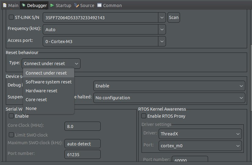| $ stm32flash /dev/ttyUSB0 stm32flash 0.5 http://stm32flash.sourceforge.net/ Interface serial_posix: 57600 8E1 Warning: the interface was not closed properly. Version : 0x30 Option 1 : 0x00 Option 2 : 0x00 Device ID : 0x0410 (STM32F10xxx Medium-density) - RAM : Up to 20KiB (512b reserved by bootloader) - Flash : Up to 128KiB (size first sector: 4x1024) - Option RAM : 16b - System RAM : 2KiB |