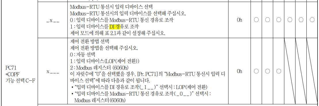 아무튼 PC71에 __40 에서 __41로 하면 범용 AC 서보 프로토콜에서 Modbus-RTU로 설정이 되는데