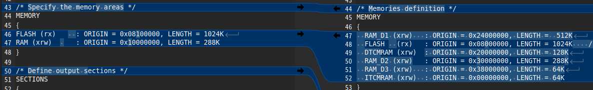 /* Sections */ SECTIONS { /* The startup code into "FLASH" Rom type memory */ .isr_vector : { . = ALIGN(4); KEEP(*(.isr_vector)) /* Startup code */ . = ALIGN(4); } >FLASH