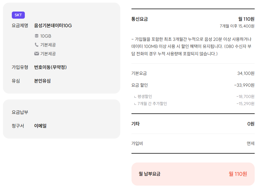 아무튼 6개월간은 110원/월 * 3!