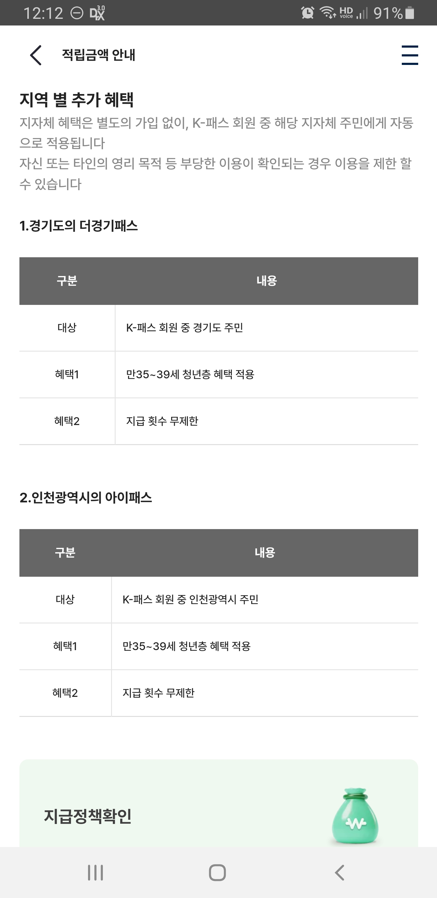 사실상 지역인증과(경기, 인천 추가혜택) 탑승횟수 및 적립금 확인만 가능해진 상태