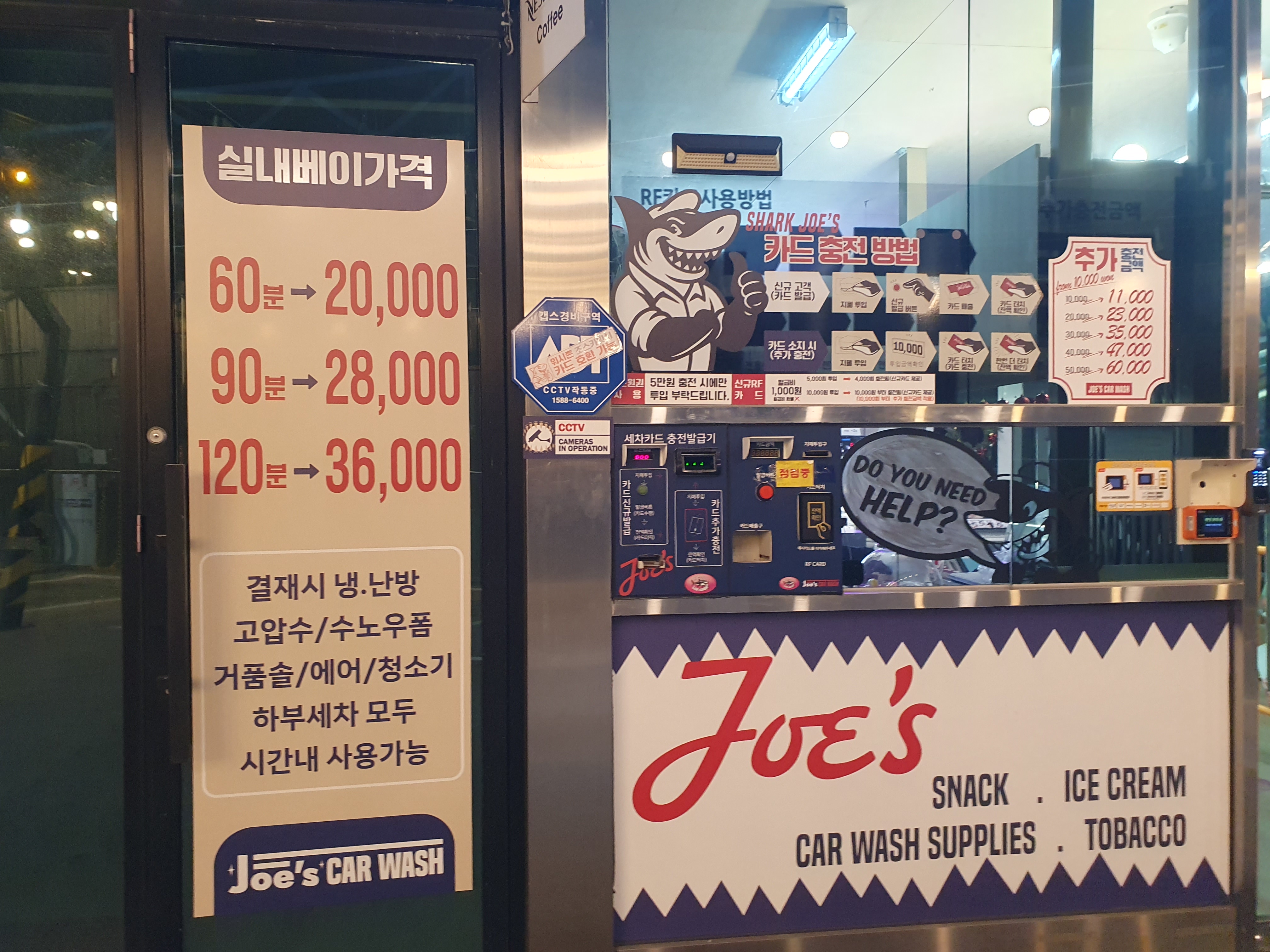 상어 아래에 있는 세차카드 충전발급기에서