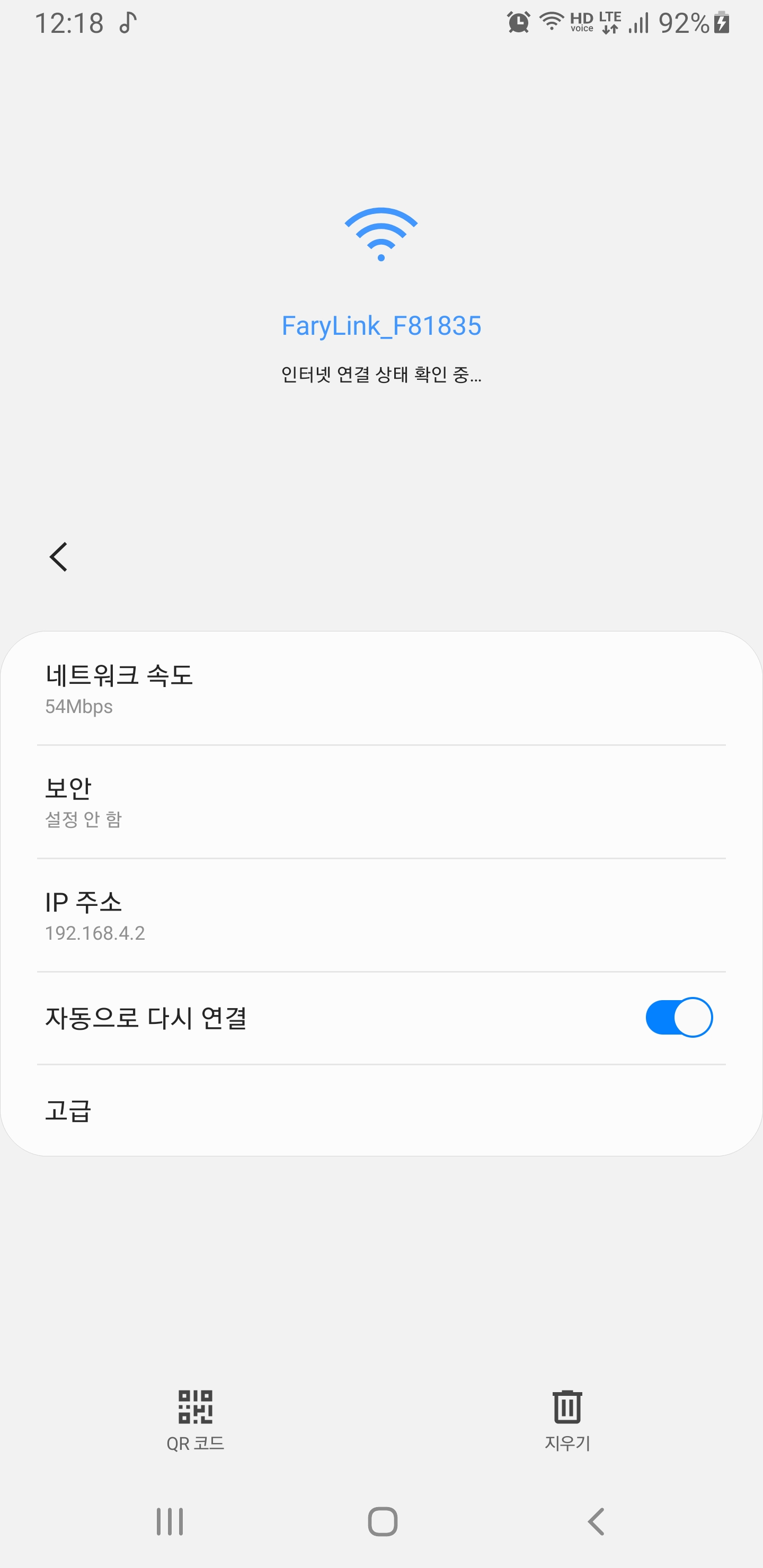 FaryLink_F81835 라는 SSID로 검색되고 접속된다.