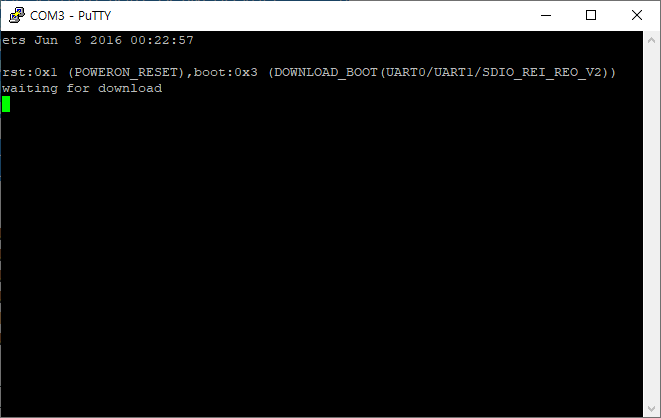 | C:\src\esp-at>idf.py -p COM3 flash Executing action: flash Running ninja in directory C:\src\esp-at\build Executing "ninja flash"... [1/7] Performing build step for 'bootloader' [1/1] cmd.exe /C "cd /D C:\src\esp-at\build\bootloader\esp-idf\esptool_py && C:\Espressif\python_env\idf5.1_py3.11_env\Scripts\python.exe C:/src/esp-at/esp-idf/components/partition_table/check_sizes.py --offset 0x8000 bootloader 0x1000 C:/src/esp-at/build/bootloader/bootloader.bin" Bootloader binary size 0x6360 bytes. 0xca0 bytes (11%) free. [2/5] Running utility command for customized_bin Creating NVS binary with version: V2 - Multipage Blob Support Enabled Created NVS binary: ===> C:/src/esp-at/build/customized_partitions\mfg_nvs.bin [3/5] cmd.exe /C "cd /D C:\src\esp-at\build\esp-idf\esptool_py && C:\Espressif\python_env\idf5.1_py3.11_env\Scripts\python.exe C:/src/esp-at/esp-idf/components/partition_table/check_sizes.py --offset 0x8000 partition --type app C:/src/esp-at/build/partition_table/partition-table.bin C:/src/esp-at/build/esp-at.bin" esp-at.bin binary size 0x162220 bytes. Smallest app partition is 0x180000 bytes. 0x1dde0 bytes (8%) free. [4/5] Running utility command for factory_bin 0x1000,bootloader/bootloader.bin 0x100000,esp-at.bin 0x8000,partition_table/partition-table.bin 0x10000,ota_data_initial.bin 0x20000,at_customize.bin 0x21000,customized_partitions/mfg_nvs.bin Create C:/src/esp-at/build\factory\factory_WROOM-32.bin for WROOM-32 finished [4/5] cmd.exe /C "cd /D C:\src\esp-at\esp-idf\components\esptool_py && C:\Espressif\tools\cmake\3.24.0\bin\cmake.exe -D IDF_PATH=C:/src/esp-at/esp-idf -D SERIAL_TOOL=C:/Espressif/python_env/idf5.1_py3.11_env/Scripts/python.exe;;C:/src/esp-at/esp-idf/components/esptool_py/esptool/esptool.py;--chip;esp32 -D SERIAL_TOOL_ARGS=--before=default_reset;--after=hard_reset;write_flash;@flash_args -D WORKING_DIRECTORY=C:/src/esp-at/build -P C:/src/esp-at/esp-idf/components/esptool_py/run_serial_tool.cmake" esptool.py --chip esp32 -p COM3 -b 460800 --before=default_reset --after=hard_reset write_flash --flash_mode dio --flash_freq 40m --flash_size 4MB 0x1000 bootloader/bootloader.bin 0x100000 esp-at.bin 0x8000 partition_table/partition-table.bin 0x10000 ota_data_initial.bin 0x20000 at_customize.bin 0x21000 customized_partitions/mfg_nvs.bin esptool.py v4.7.0 Serial port COM3 Connecting...... Chip is ESP32-D0WDQ6 (revision v1.0) Features: WiFi, BT, Dual Core, 240MHz, VRef calibration in efuse, Coding Scheme None Crystal is 40MHz MAC: 84:cc:a8:2f:0d:d0 Uploading stub... Running stub... Stub running... Changing baud rate to 460800 Changed. Configuring flash size... Flash will be erased from 0x00001000 to 0x00007fff... Flash will be erased from 0x00100000 to 0x00262fff... Flash will be erased from 0x00008000 to 0x00008fff... Flash will be erased from 0x00010000 to 0x00011fff... Flash will be erased from 0x00020000 to 0x00020fff... Flash will be erased from 0x00021000 to 0x0003cfff... Compressed 25440 bytes to 16041... Writing at 0x00001000... (100 %) Wrote 25440 bytes (16041 compressed) at 0x00001000 in 0.7 seconds (effective 288.7 kbit/s)... Hash of data verified. Compressed 1450528 bytes to 972218... Writing at 0x00100000... (1 %) Writing at 0x0010963d... (3 %) Writing at 0x00110ce3... (5 %) Writing at 0x00116ba0... (6 %) Writing at 0x0012127f... (8 %) Writing at 0x00126d95... (10 %) Writing at 0x0012ca60... (11 %) Writing at 0x00132bbe... (13 %) Writing at 0x0013896a... (15 %) Writing at 0x0013e89f... (16 %) Writing at 0x00144b1f... (18 %) Writing at 0x0014b63b... (20 %) Writing at 0x00151cca... (21 %) Writing at 0x0015769b... (23 %) Writing at 0x0015d0f7... (25 %) Writing at 0x00162943... (26 %) Writing at 0x0016946d... (28 %) Writing at 0x0016f58e... (30 %) Writing at 0x00175808... (31 %) Writing at 0x0017b59c... (33 %) Writing at 0x001812f6... (35 %) Writing at 0x00187197... (36 %) Writing at 0x0018d4fc... (38 %) Writing at 0x0019348b... (40 %) Writing at 0x00198f2e... (41 %) Writing at 0x0019ea42... (43 %) Writing at 0x001a4bb3... (45 %) Writing at 0x001aa5c7... (46 %) Writing at 0x001afe1d... (48 %) Writing at 0x001b5c0f... (50 %) Writing at 0x001bb56a... (51 %) Writing at 0x001c112f... (53 %) Writing at 0x001c6a61... (55 %) Writing at 0x001cc379... (56 %) Writing at 0x001d282a... (58 %) Writing at 0x001d8ad3... (60 %) Writing at 0x001de3a3... (61 %) Writing at 0x001e3cff... (63 %) Writing at 0x001e9e72... (65 %) Writing at 0x001efb12... (66 %) Writing at 0x001f52c1... (68 %) Writing at 0x001fabdc... (70 %) Writing at 0x001ffe7e... (71 %) Writing at 0x002052d6... (73 %) Writing at 0x0020a64d... (75 %) Writing at 0x0020fcbe... (76 %) Writing at 0x002153df... (78 %) Writing at 0x0021afa4... (80 %) Writing at 0x00220c24... (81 %) Writing at 0x0022615c... (83 %) Writing at 0x0022bc78... (85 %) Writing at 0x00231146... (86 %) Writing at 0x002365df... (88 %) Writing at 0x0023d148... (90 %) Writing at 0x00243b32... (91 %) Writing at 0x00249450... (93 %) Writing at 0x0024f14a... (95 %) Writing at 0x00254e7f... (96 %) Writing at 0x0025ab46... (98 %) Writing at 0x00260020... (100 %) Wrote 1450528 bytes (972218 compressed) at 0x00100000 in 22.7 seconds (effective 511.4 kbit/s)... Hash of data verified. Compressed 3072 bytes to 129... Writing at 0x00008000... (100 %) Wrote 3072 bytes (129 compressed) at 0x00008000 in 0.1 seconds (effective 393.5 kbit/s)... Hash of data verified. Compressed 8192 bytes to 31... Writing at 0x00010000... (100 %) Wrote 8192 bytes (31 compressed) at 0x00010000 in 0.1 seconds (effective 836.7 kbit/s)... Hash of data verified. Compressed 3072 bytes to 92... Writing at 0x00020000... (100 %) Wrote 3072 bytes (92 compressed) at 0x00020000 in 0.0 seconds (effective 522.0 kbit/s)... Hash of data verified. Compressed 114688 bytes to 13156... Writing at 0x00021000... (100 %) Wrote 114688 bytes (13156 compressed) at 0x00021000 in 1.5 seconds (effective 614.5 kbit/s)... Hash of data verified. Leaving... Hard resetting via RTS pin... Done C:\src\esp-at> |
