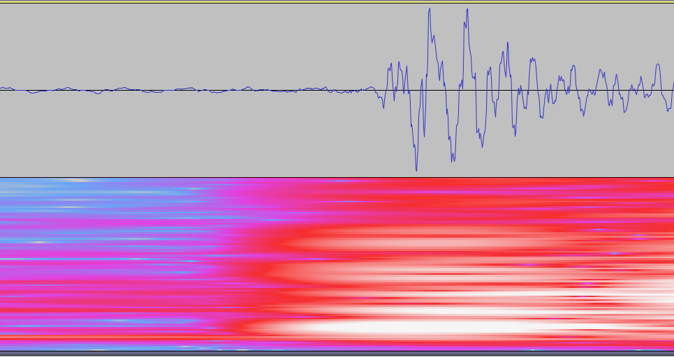 더 일찍 부터 다른 주파수의 값들이(아래 그림에서 하얗고 빨간 부분)이 먼저 나오게 된다.