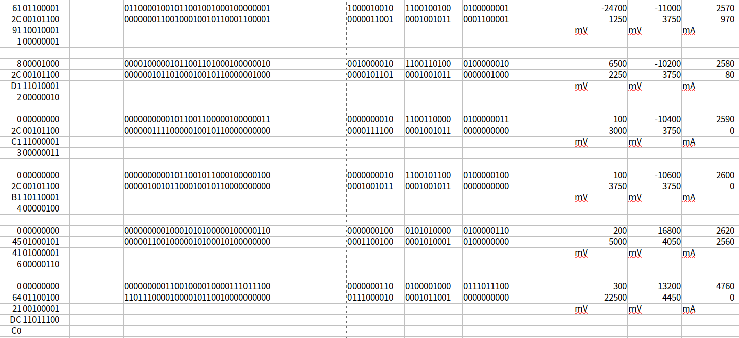 | 61 2C 91 01 08 2C D1 02 00 2C C1 03 00 2C B1 04 00 45 41 06 00 64 21 DC C0 |