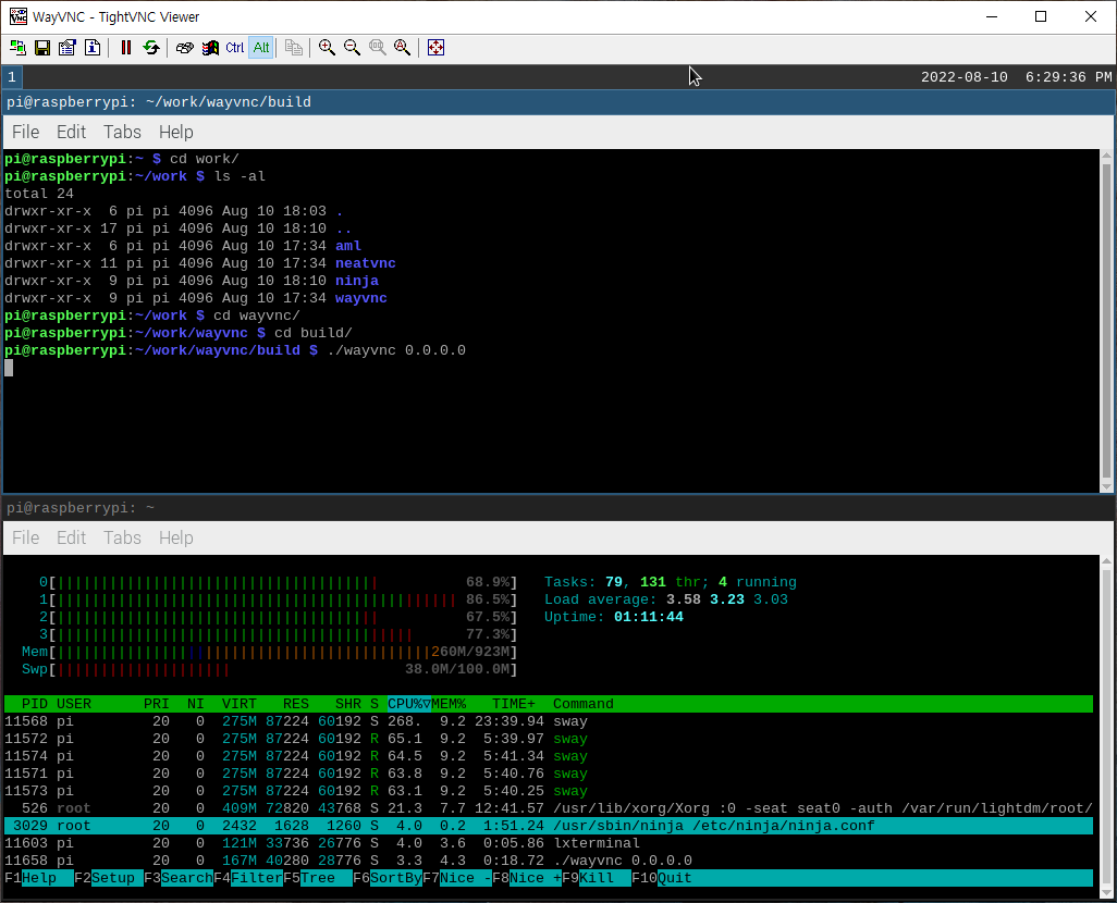 rpi3b에서 wayvnc 빌드 + 실행하기