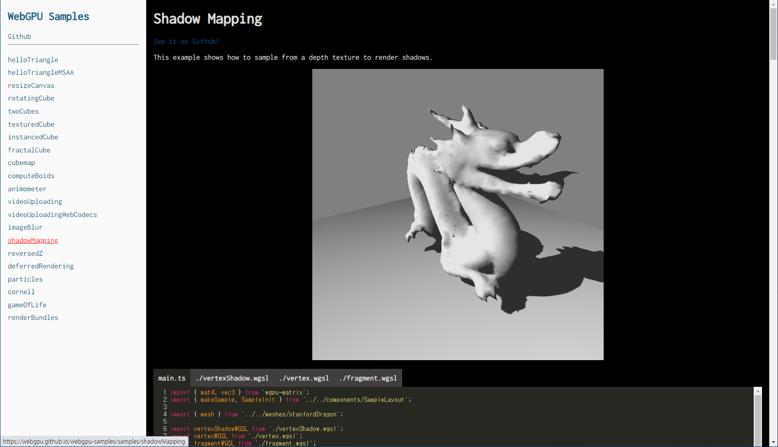 [링크 : https://webgpu.github.io/webgpu-samples/samples/shadowMapping]