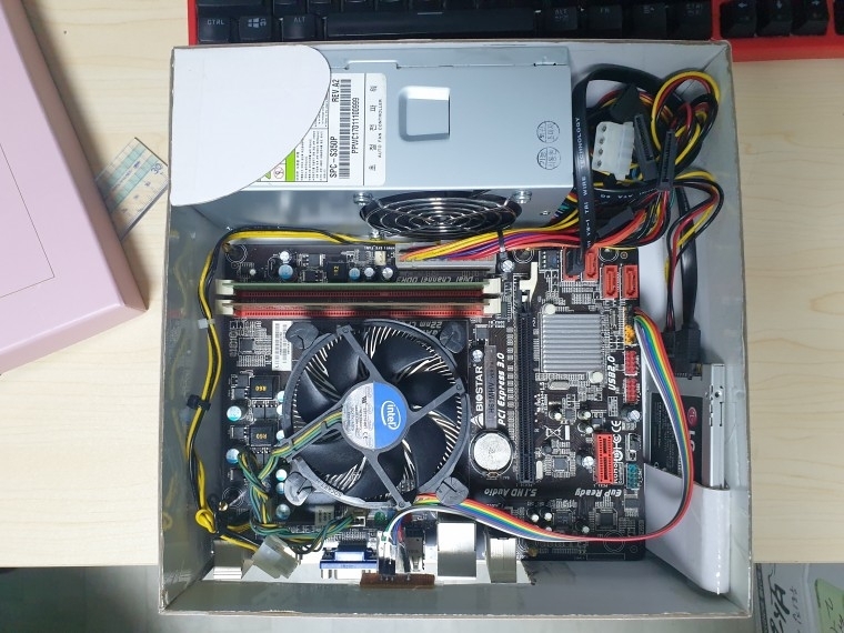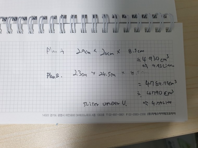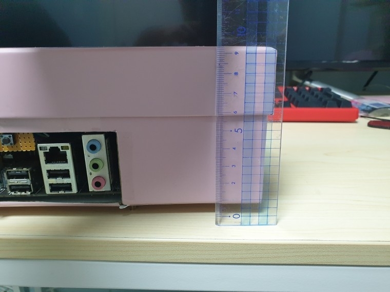 메인보드랑 파워 위치 배치하면서 가로 세로 길이 잰다음 부피를 계산.