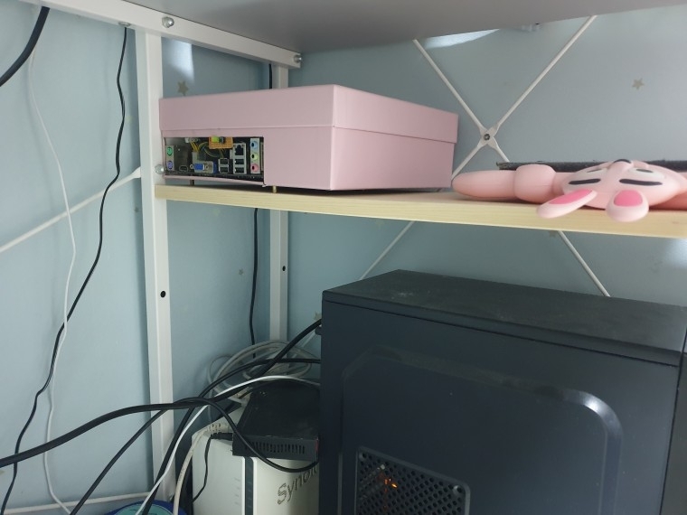 SSD는 예상보다 약간 커진 상자 크기로 인해 여유 공간이 생겨서 대충 세워놓고 연결