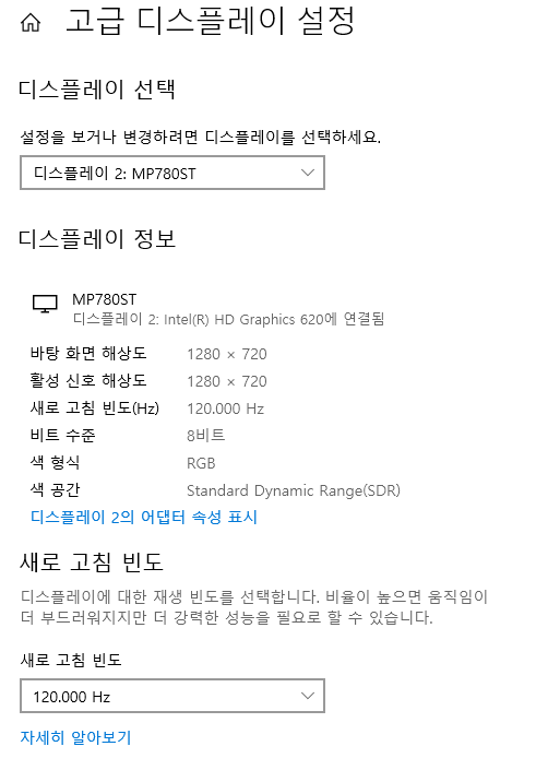 7세대 노트북이라도 720p120은 단독으로 해야지