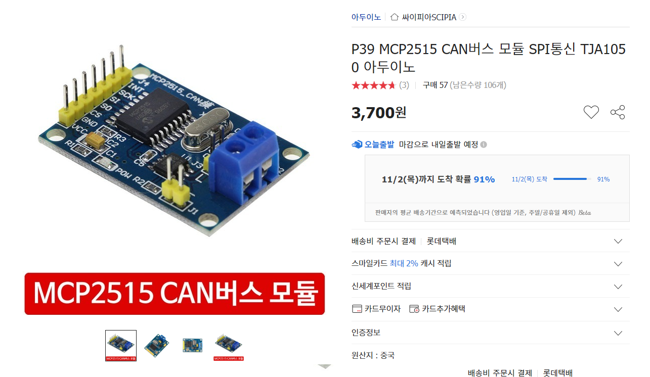 아두이노나 라즈베리 CAN HAT 은 3~4만원은 해서 구매하기 부담스러웠는데
