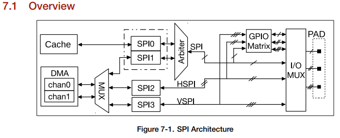 ![]() Controllers SPI2 and SPI3 use signal buses starting with “HSPI” and “VSPI” respectively |