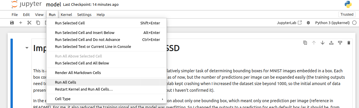아무튼 Run에 Run All Cells 하면 순차적으로 실행된다.