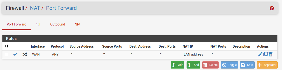 이걸 아무생각없이 wan any를 lan any로 포워딩 하니