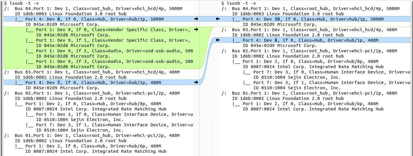 | $ sudo dmesg -w [ 1780.341670] usb 4-4: new SuperSpeed USB device number 8 using xhci_hcd [ 1781.804378] usb 3-4: new high-speed USB device number 7 using xhci_hcd [ 1781.954783] usb 3-4: New USB device found, idVendor=045e, idProduct=02d9, bcdDevice= 0.70 [ 1781.954794] usb 3-4: New USB device strings: Mfr=1, Product=2, SerialNumber=0 [ 1781.954797] usb 3-4: Product: NuiSensor Adaptor [ 1781.954800] usb 3-4: Manufacturer: Microsoft Corporation [ 1781.955676] hub 3-4:1.0: USB hub found [ 1781.955807] hub 3-4:1.0: 1 port detected [ 1783.324924] usb 4-4: New USB device found, idVendor=045e, idProduct=02d9, bcdDevice= 0.73 [ 1783.324936] usb 4-4: New USB device strings: Mfr=1, Product=2, SerialNumber=0 [ 1783.324940] usb 4-4: Product: NuiSensor Adaptor [ 1783.324942] usb 4-4: Manufacturer: Microsoft Corporation [ 1783.326192] hub 4-4:1.0: USB hub found [ 1783.326380] hub 4-4:1.0: 1 port detected [ 1783.808453] usb 4-4.1: new SuperSpeed USB device number 9 using xhci_hcd [ 1783.829395] usb 4-4.1: New USB device found, idVendor=045e, idProduct=02d8, bcdDevice= 1.00 [ 1783.829404] usb 4-4.1: New USB device strings: Mfr=1, Product=2, SerialNumber=4 [ 1783.829408] usb 4-4.1: Product: Xbox NUI Sensor [ 1783.829410] usb 4-4.1: Manufacturer: Microsoft [ 1783.829413] usb 4-4.1: SerialNumber: 501441643042 |