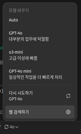 모델 바꾸기에 "웹 검색" 이라는게 추가되고 그걸 누르면 웹을 검색해서 알려주나 보다.. 싶은데