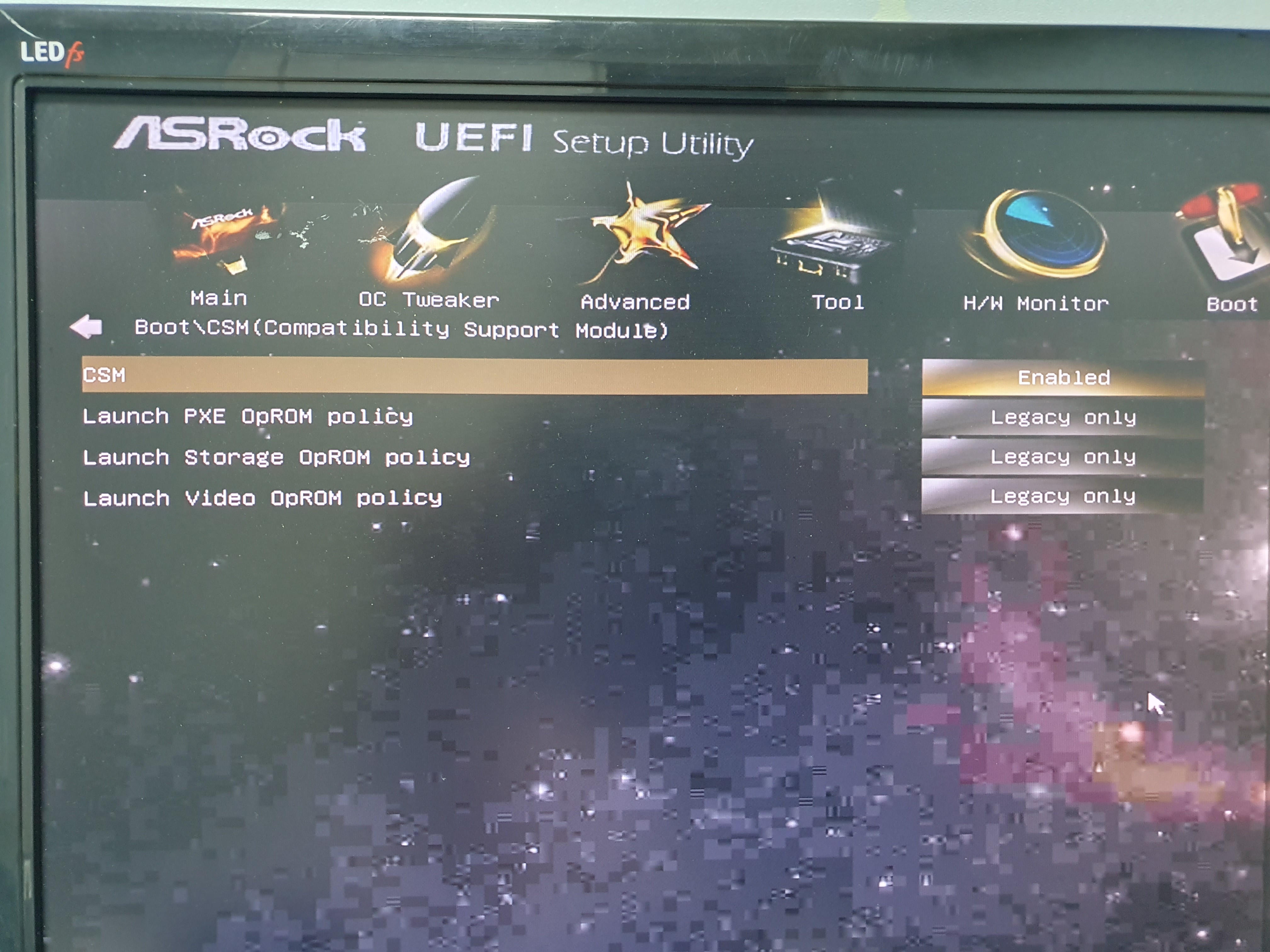 그 와중에 ASRock 메인보드는 PXE OpROM policy를 Legacy only 에서 UEFI only로 해주면
