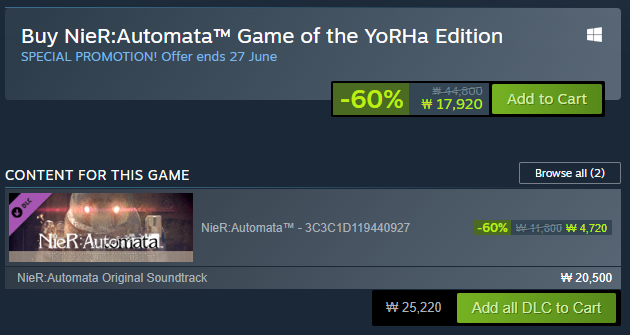 [링크 : https://store.steampowered.com/app/524220/NieRAutomata/]