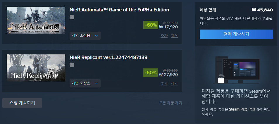 합쳐서 4.6만 흐음.. 60% 할인인데도 이러다니, 그냥 다음 할인을 노리는게 나으려나?