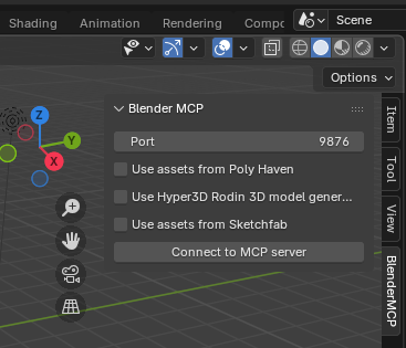 BlenderMCP 에서 Connect to MCP Server 실행