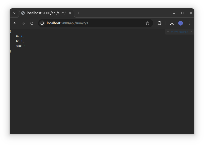 return jsonify({"a": a, "b": b, "sum": a + b})
