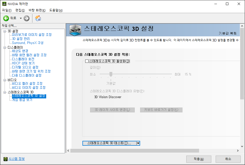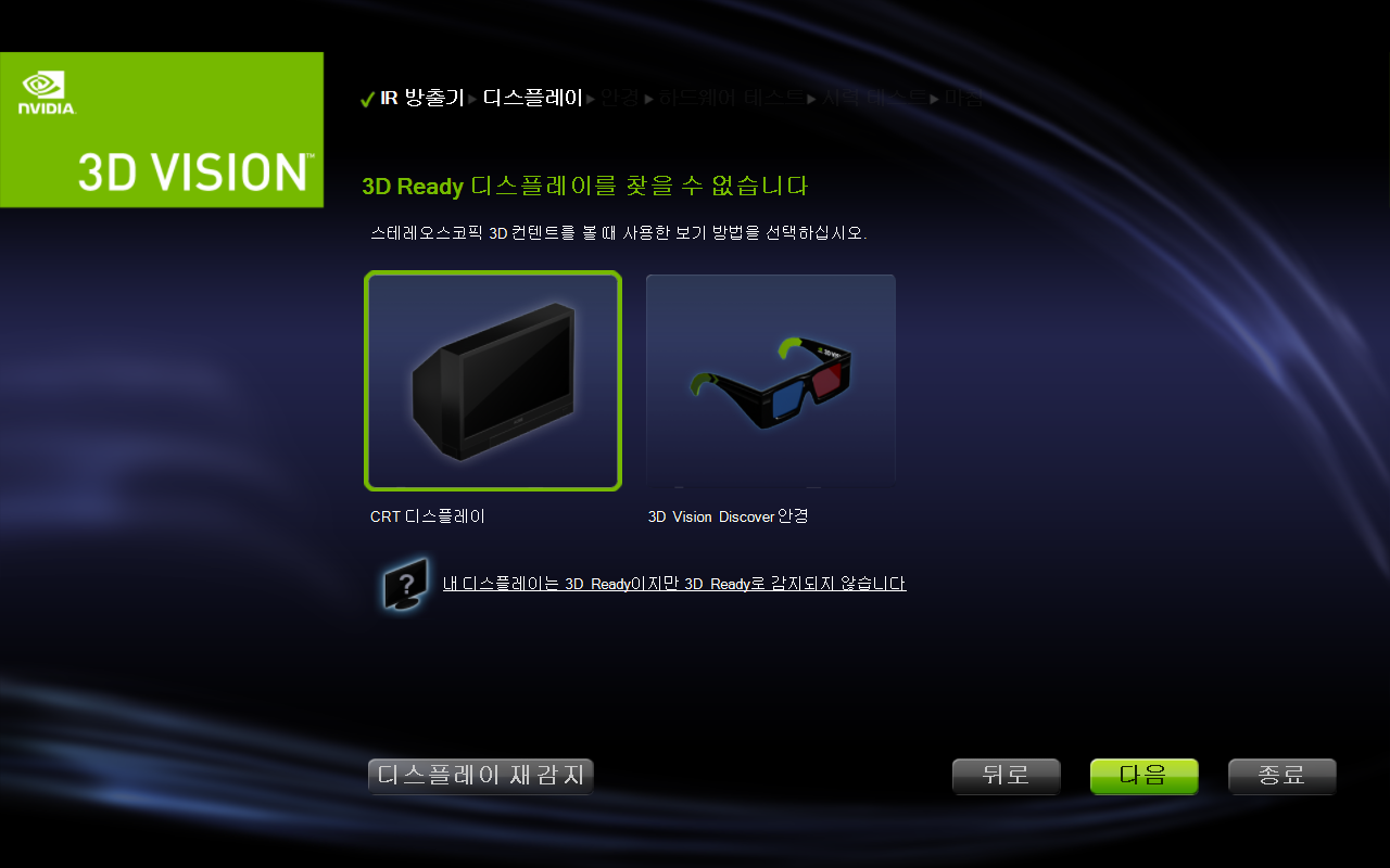 그나저나 "내 디스플레이는 3D Ready 이지만 3D Ready로 감지되지 않습니다" 라는 문구가 나온다.
