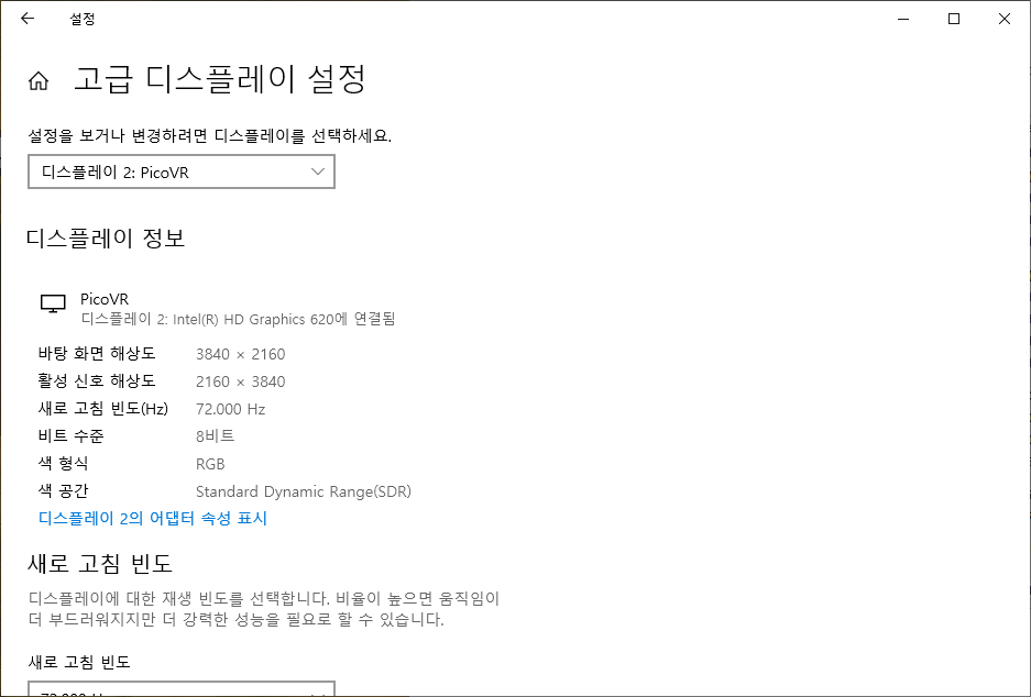 모니터로 잡히는데 일반 모니터인건 맞는데 표기법이 다를 뿐이려나. 윈11은 PicoVR이라고 명시된다.