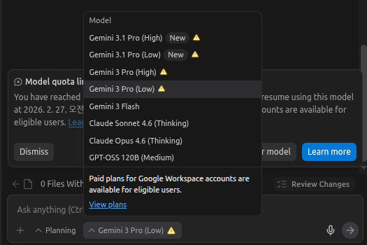 antigravity 사용량 끝!